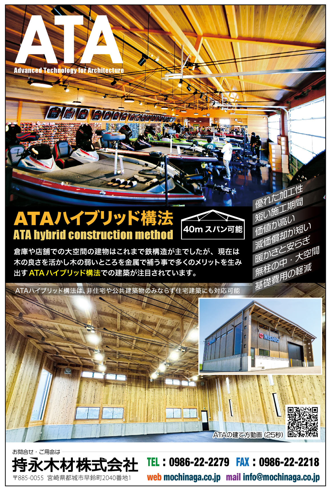 持永木材の第1・第2倉庫はATAハイブリッド構法で建設されています。無柱の大空間は倉庫としてだけではなく、店舗やイベント等に活用できます。この第1・第2倉庫は都城モデルとして見学ができます。弊社にお越しの際は是非ご覧になってください。